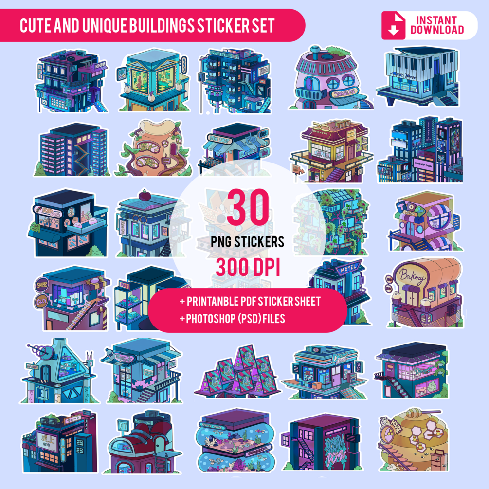 30 Cute and Unique Aesthetic Building Digital Sticker Set